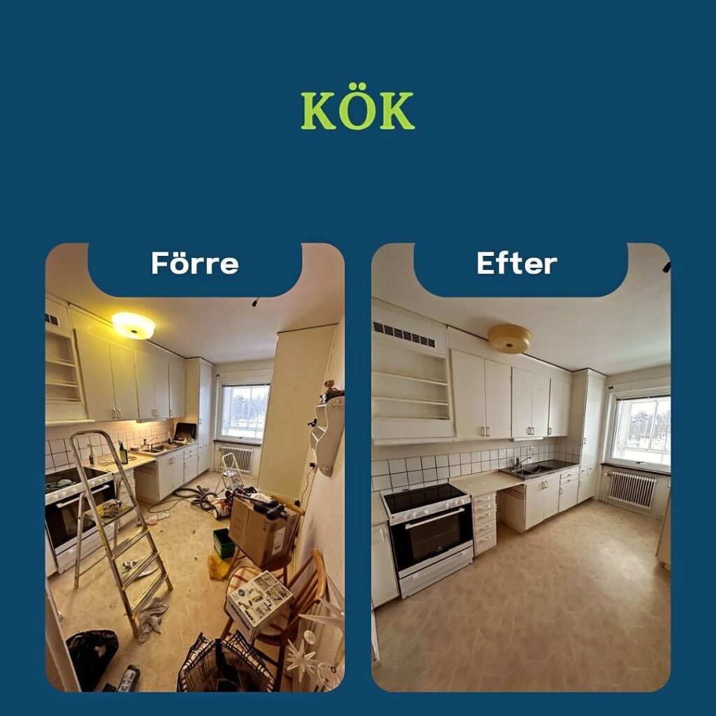 Efter avslutat arbete lämnades bostaden tom, ren och redo för vidare användning.